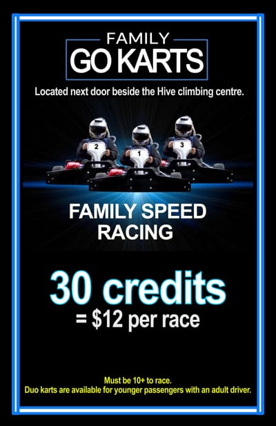 Central City Fun Park's brand new Go Kart track is located next door (beside The Hive Rock Climbing)...
