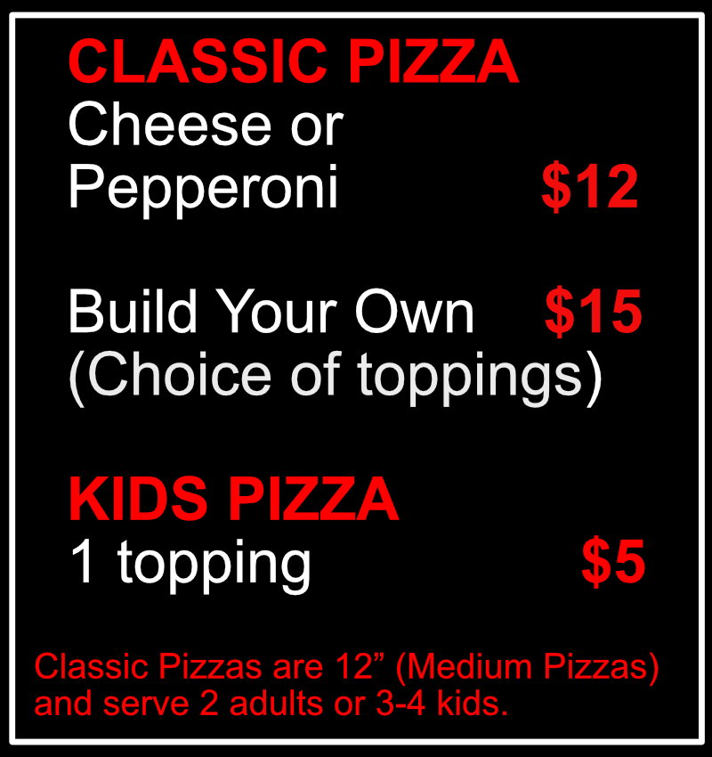 Every Pizza is "Made to order" and is fast-baked in one of our specialty pizza ovens. Pricing is subject to change.